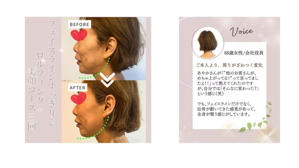 でも、フェイスラインだけでなく、仙骨が動いてきた感覚があって、全身が整う感じがしています。